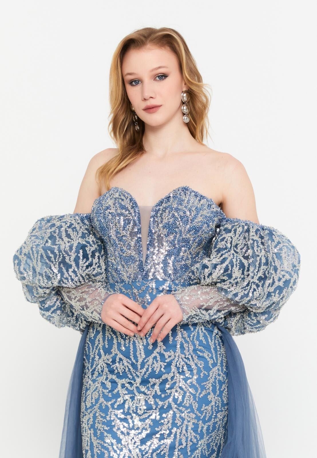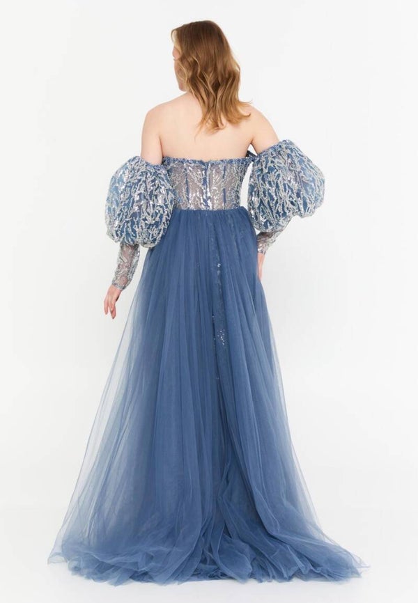 Blue high end designer dress.